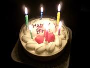 食事の後に、頼んでいてくれたバースデーケーキ。おなかいっぱいにもかかわらず、おとな食い。