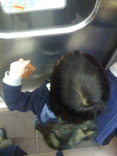 チビは昼にハッピーセットでもらったおもちゃのカメラがお気に入りらしく、電車を撮ったり、車を撮ったり。